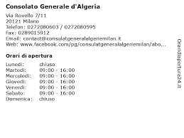 Informazioni di contatto, indirizzo, orari ambasciata algeria roma & cosolato algerino milano roma.